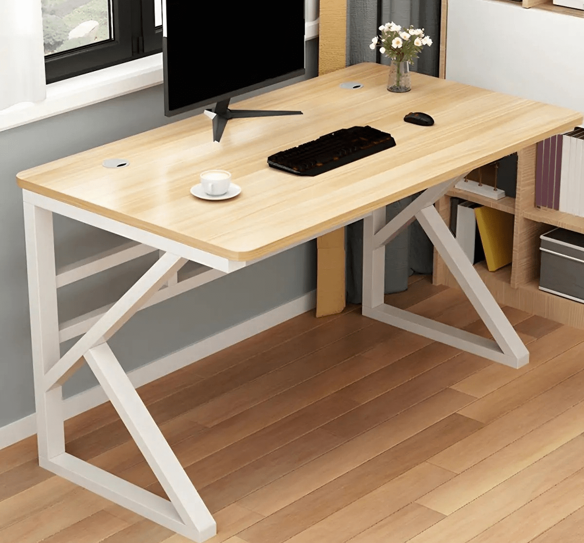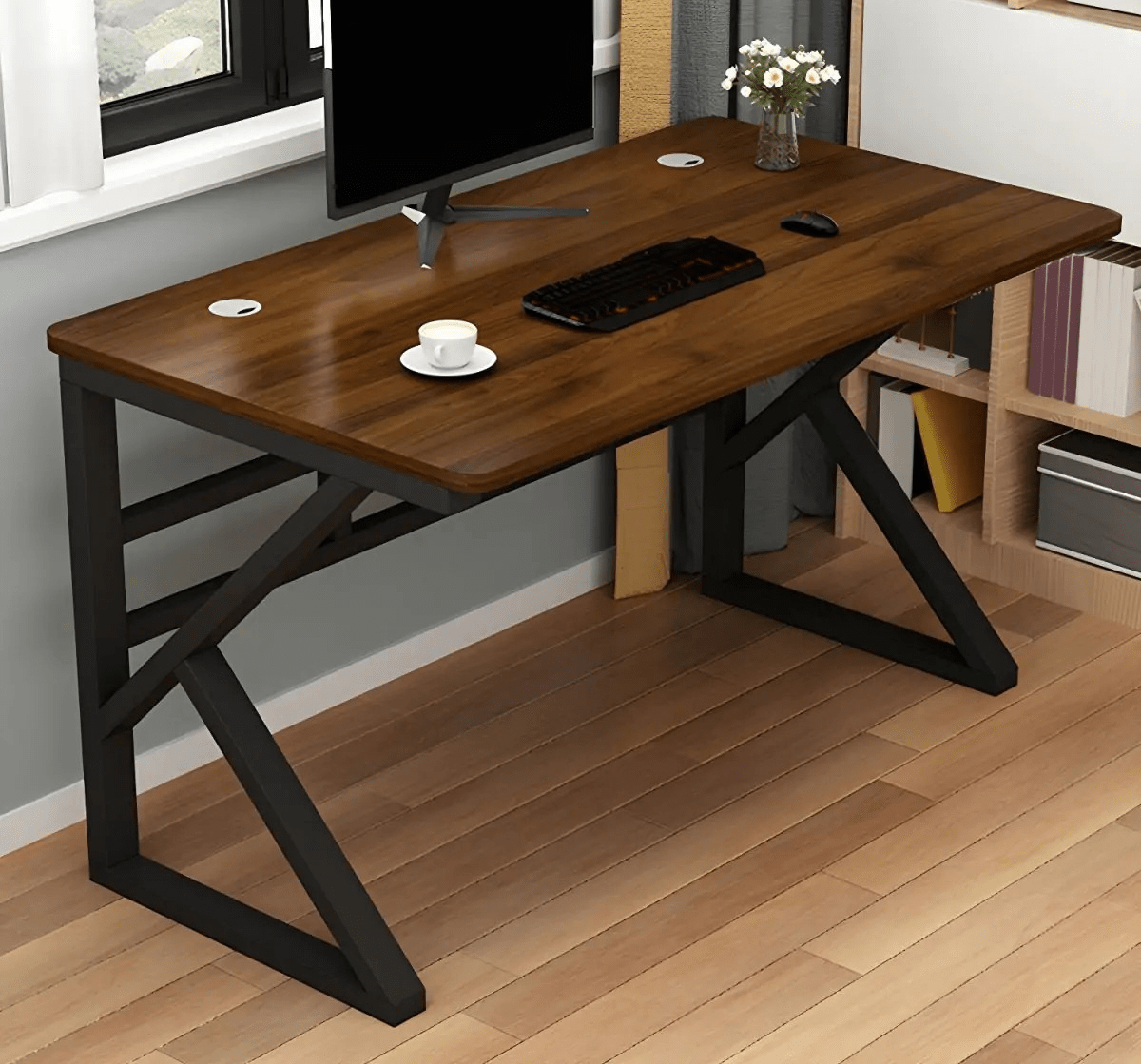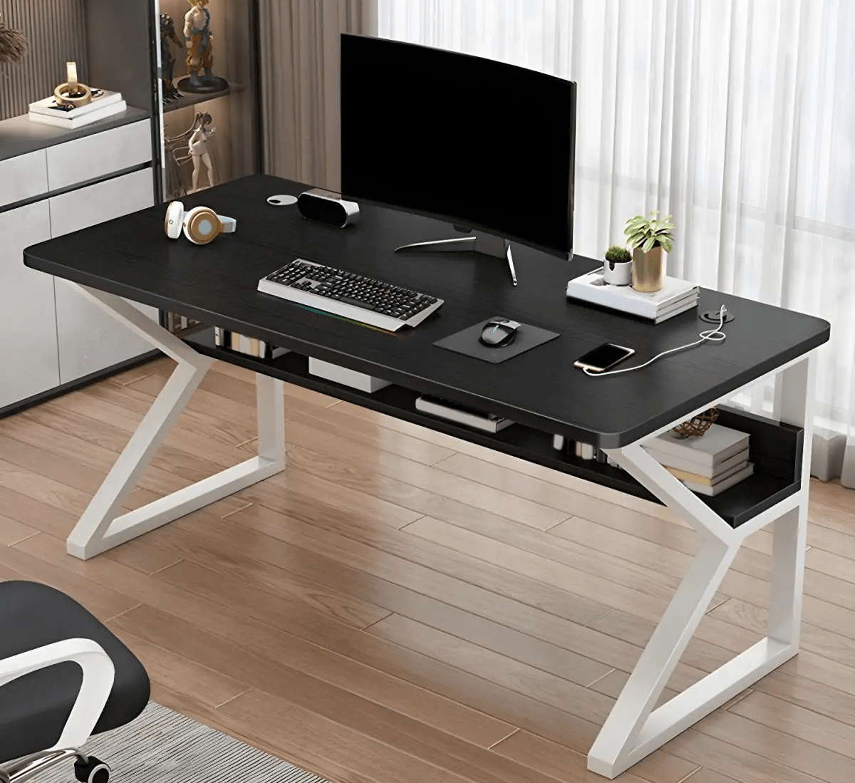 This computer desk features a 1.2-meter-wide tabletop that offers ample working space without taking up too much room. In addition, its thoughtful design allows easy organization of office accessories and tech devices. As a result, it creates a clutter-free and efficient work environment suitable for professionals, students, and remote workers.