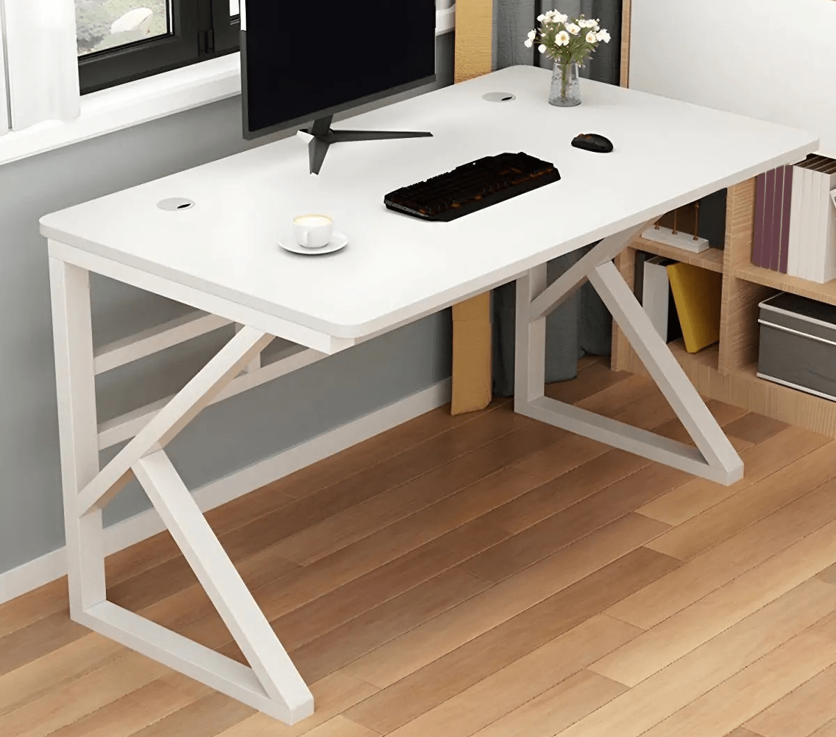 With its sleek lines and contemporary finish, this desk seamlessly fits into modern offices, study rooms, or home setups. Additionally, it complements a wide range of décor themes, from minimalistic to industrial styles. Consequently, it enhances your workspace with elegance and practicality.