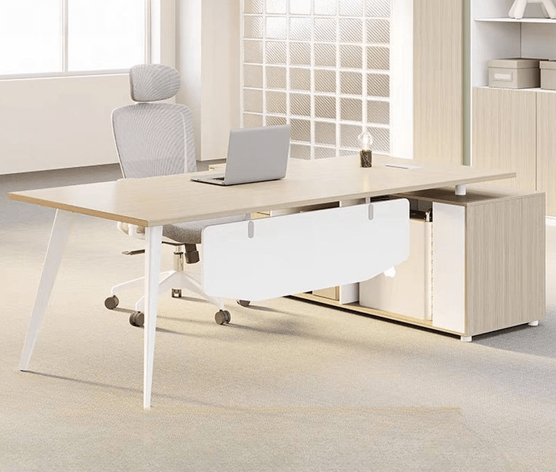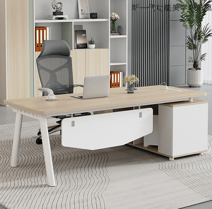Featuring a sleek and minimalist design, the desk complements modern office interiors effortlessly. Its neutral finish ensures that it blends seamlessly with various décor styles, while its elegant lines add a touch of sophistication to your workspace. Therefore, it is both a practical and stylish addition to any office.