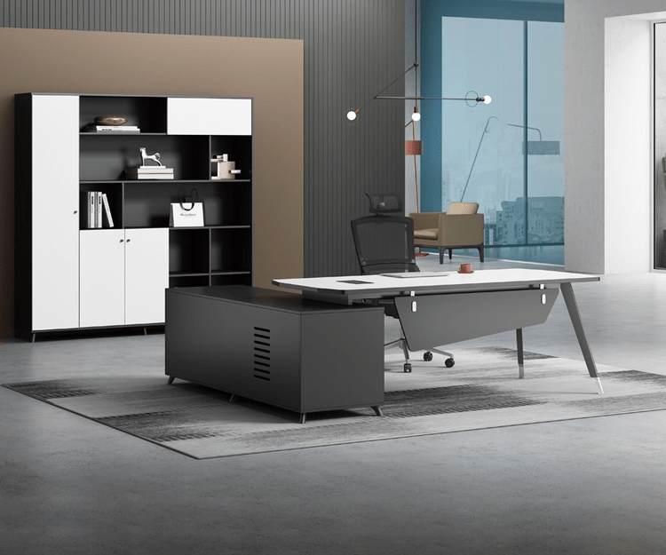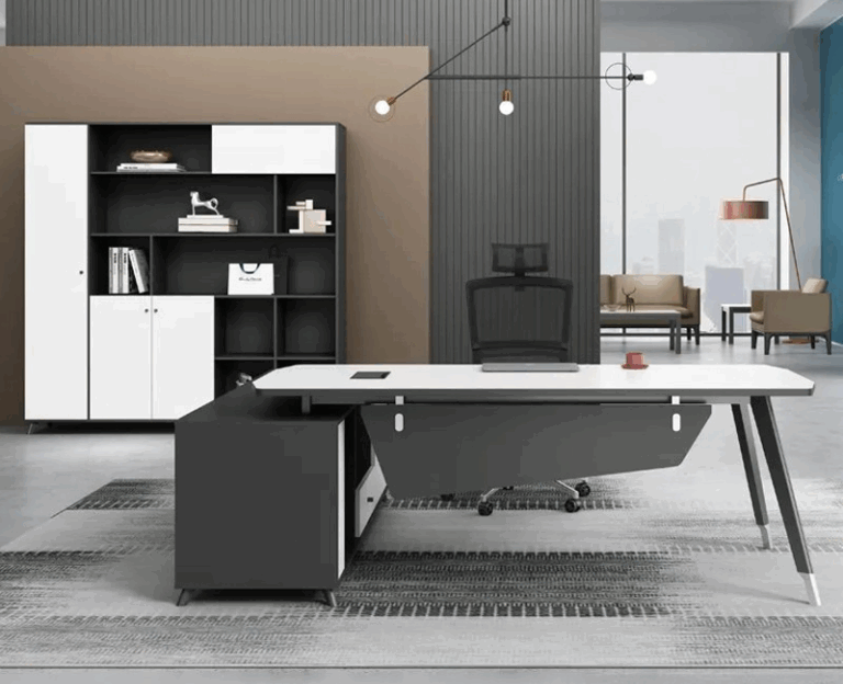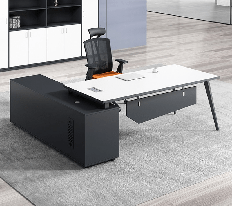 office desk, L-shaped office desk, ergonomic workspace desk, modern office furniture, durable office desk, professional home office desk, organized office workstation, executive L-desk, multifunctional office desk, compact L-shape desk