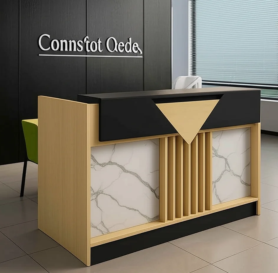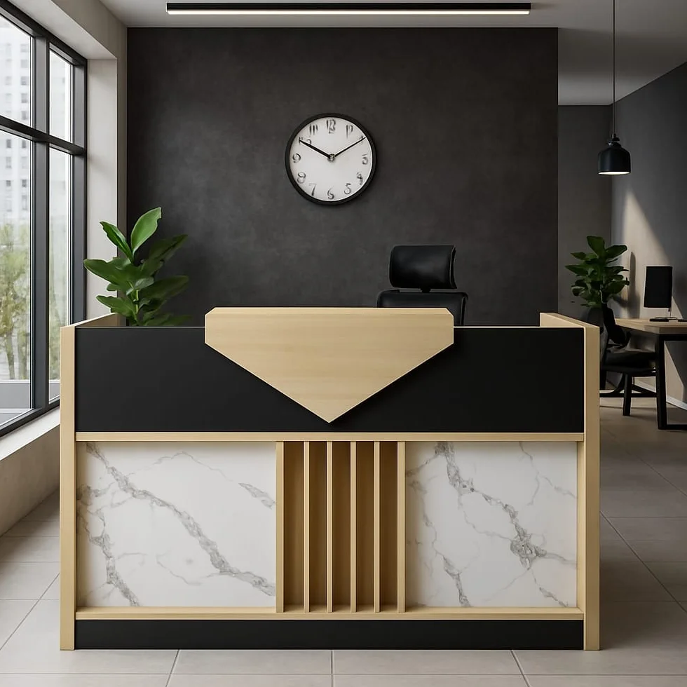 In addition to its stylish appearance, this reception desk is built using high-quality engineered wood and durable laminated panels. These premium materials ensure long-term strength, stability, and resistance to daily wear and tear.
