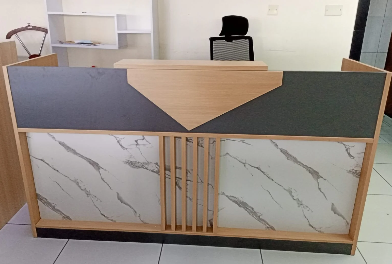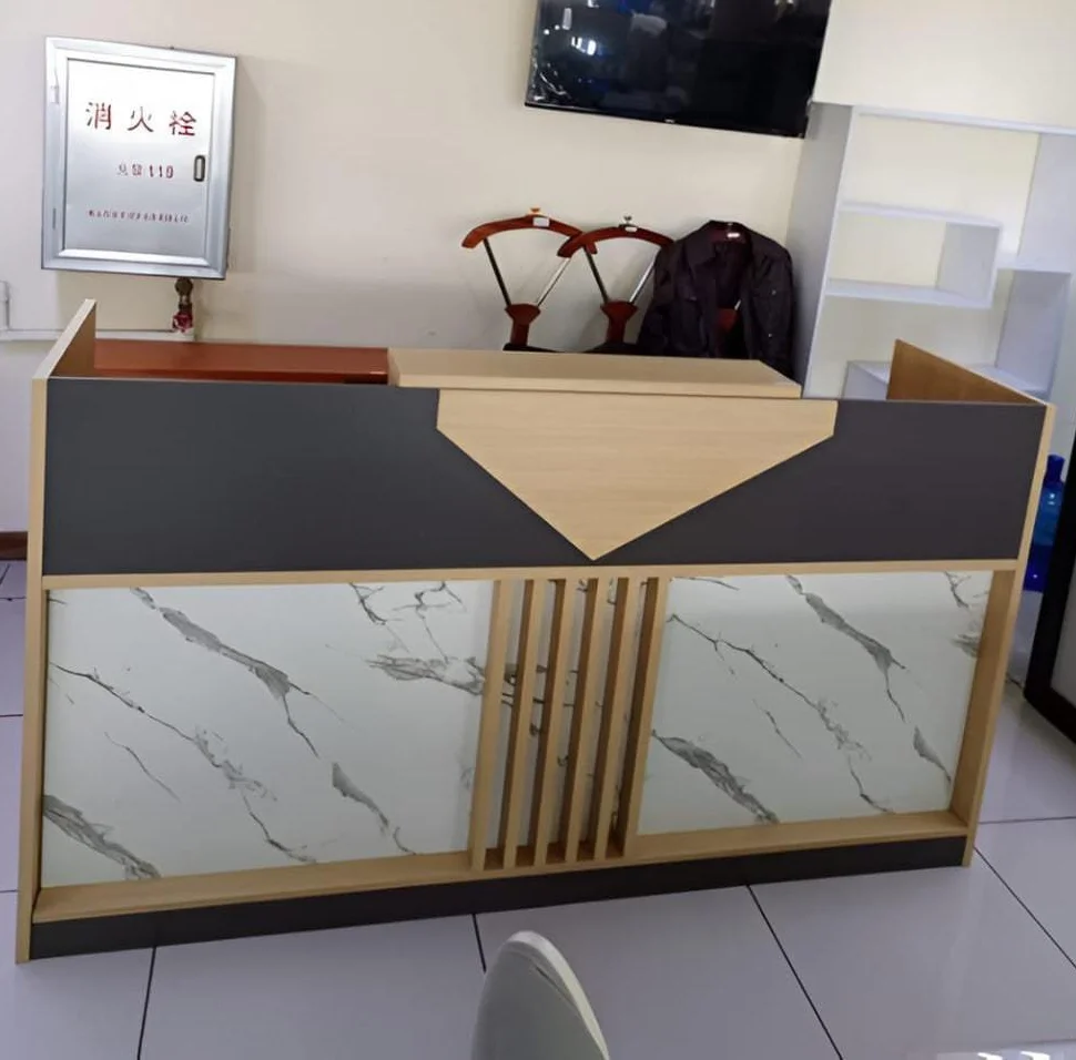 In terms of maintenance, the smooth laminated surface is easy to clean and maintain. Simply wiping it with a soft cloth keeps it looking new and polished. Consequently, businesses can maintain a professional reception space without excessive upkeep costs.