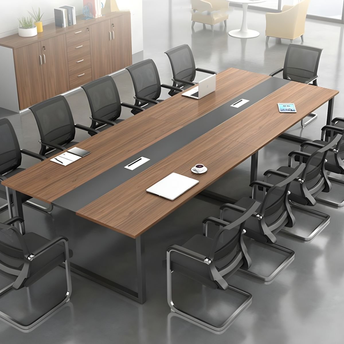Keywords: 10-seater conference table, large boardroom table, rectangular meeting table, modern executive table, office meeting table for 10, professional workspace table.