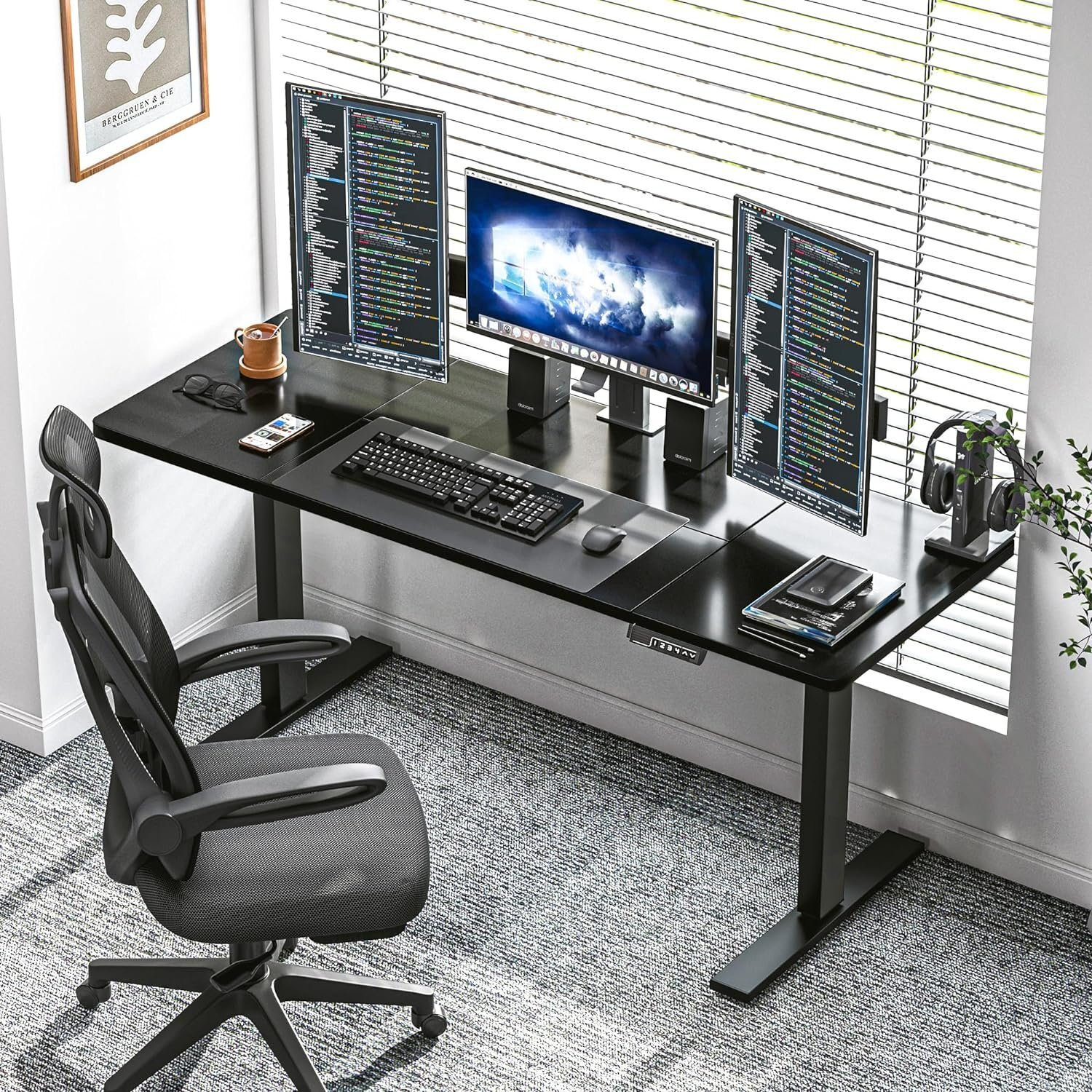 Black & White electric height adjustable home/office desks.