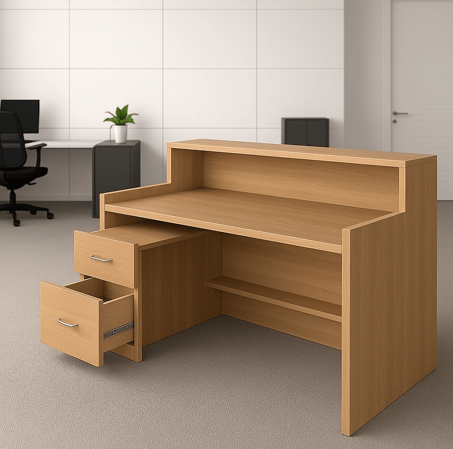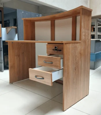 The desk provides practical storage options with drawers and compartments for stationery, files, and personal items. Furthermore, its ergonomic layout keeps essentials within easy reach, helping maintain a clutter-free workspace while supporting efficient workflows.