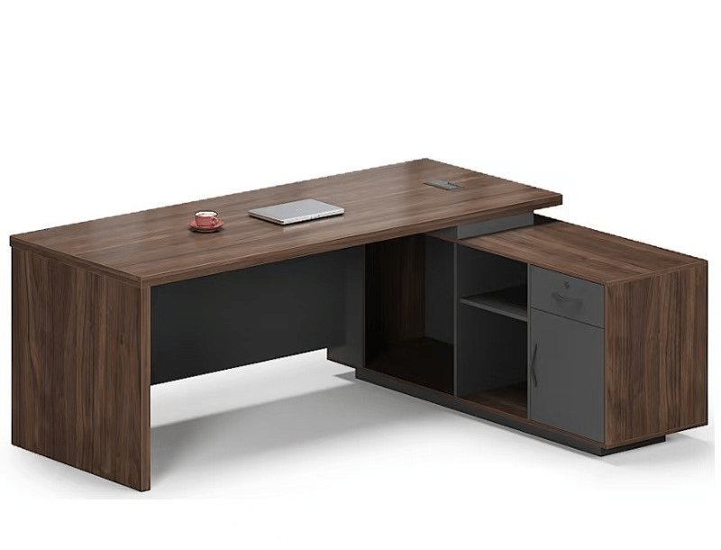 Featuring a modern design with clean lines, the desk enhances the look of any workspace. Its sleek finish blends seamlessly with different décor styles, creating a polished and professional atmosphere.