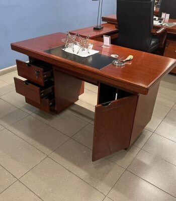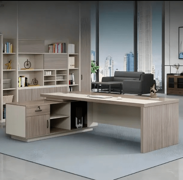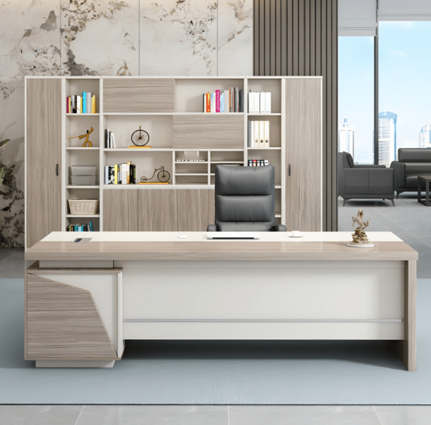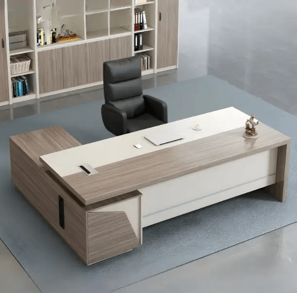 Constructed from premium materials, this executive desk guarantees long-lasting durability and stability. Furthermore, its sturdy frame and smooth tabletop are resistant to scratches, stains, and everyday wear, maintaining a polished and professional appearance over time. Because of its solid construction, the desk remains a dependable centerpiece for any office.