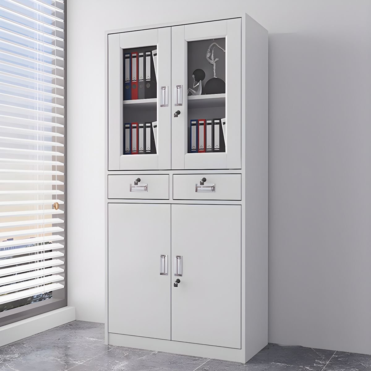 - Durable Construction: Built to withstand the demands of daily use, this metallic office cabinet features a robust steel construction that ensures long-lasting durability and stability. The reinforced frame and doors provide added strength and security, making it suitable for busy office environments.