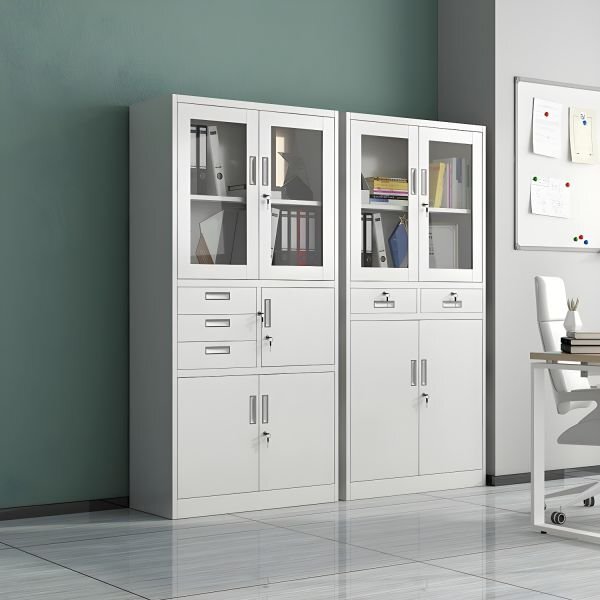Security is a top priority with the 2-Door Metallic Office Safe Cabinet. Each door is equipped with a dual locking system, combining a programmable digital keypad with a mechanical key lock for backup.