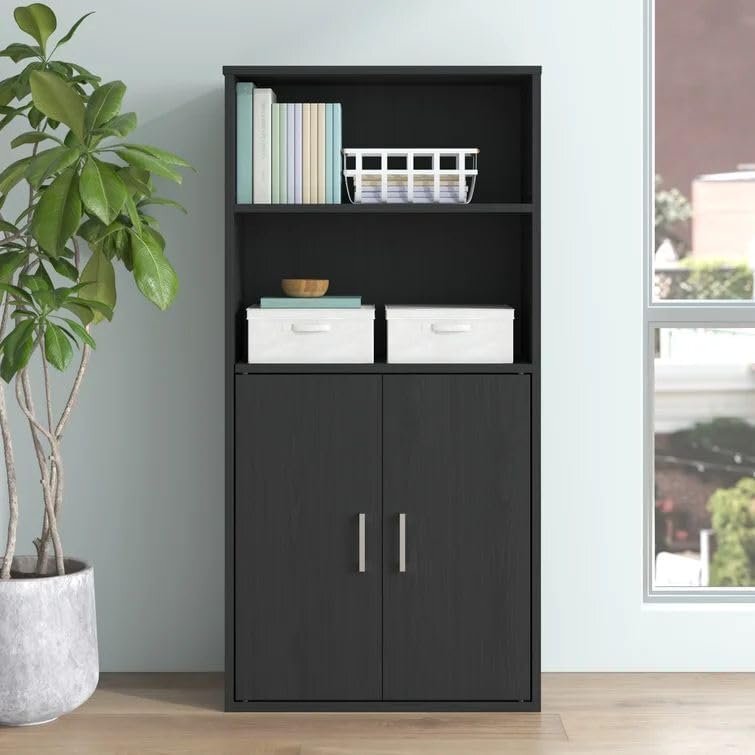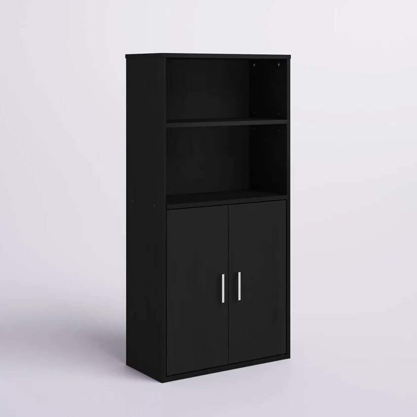 - Spacious Storage: Two large doors open to reveal multiple shelves, providing ample space for storing files, books, office supplies, and other items.