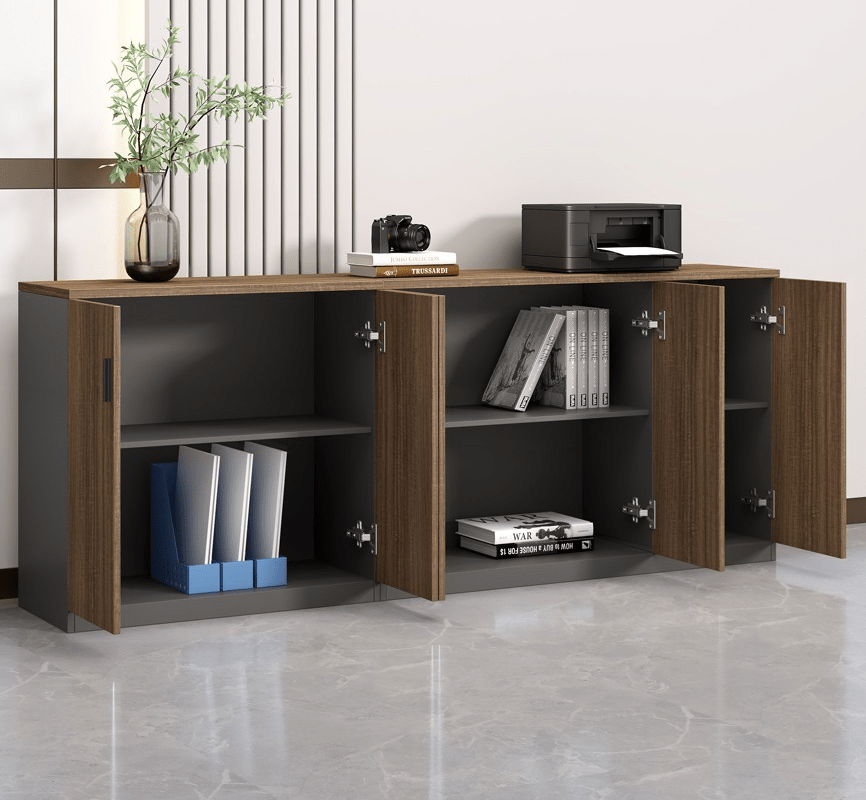 Behind the two sturdy swing doors lies a spacious storage compartment, ideal for organizing documents, supplies, books, or kitchenware. Interior shelves help maximize space and keep your items neatly arranged and easily accessible. The doors are fitted with sleek handles and strong hinges for smooth, quiet operation.