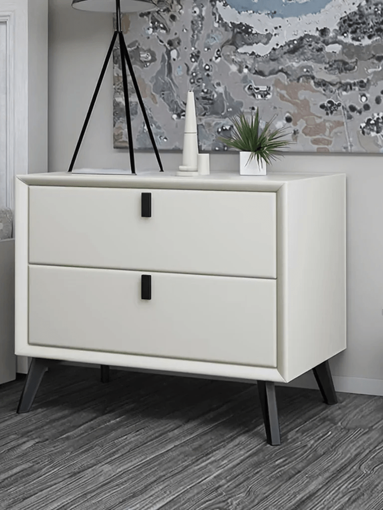 With clean lines, neutral finishes, and minimalist hardware, this bedside table complements a wide range of bedroom décor styles. Additionally, its compact and elegant design adds a touch of sophistication without overwhelming the space. Consequently, it combines style, practicality, and functionality.
