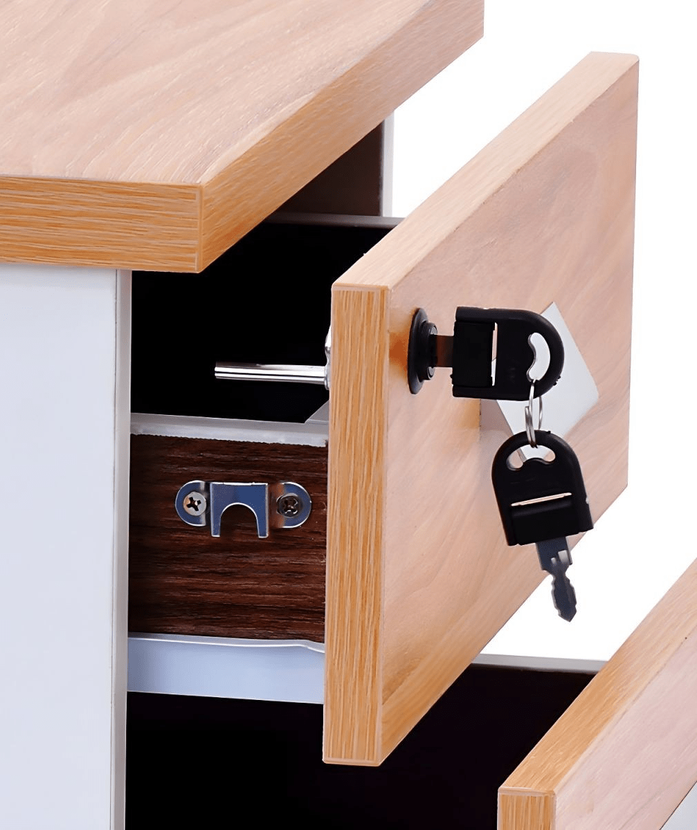 The cabinet features three generously sized drawers, offering ample room for files, stationery, and other essentials. As a result, you can maintain an organized workspace without clutter. In addition, each drawer slides smoothly on quality runners, allowing easy access while minimizing noise and effort. This thoughtful design ensures your office remains orderly and productive throughout the day.