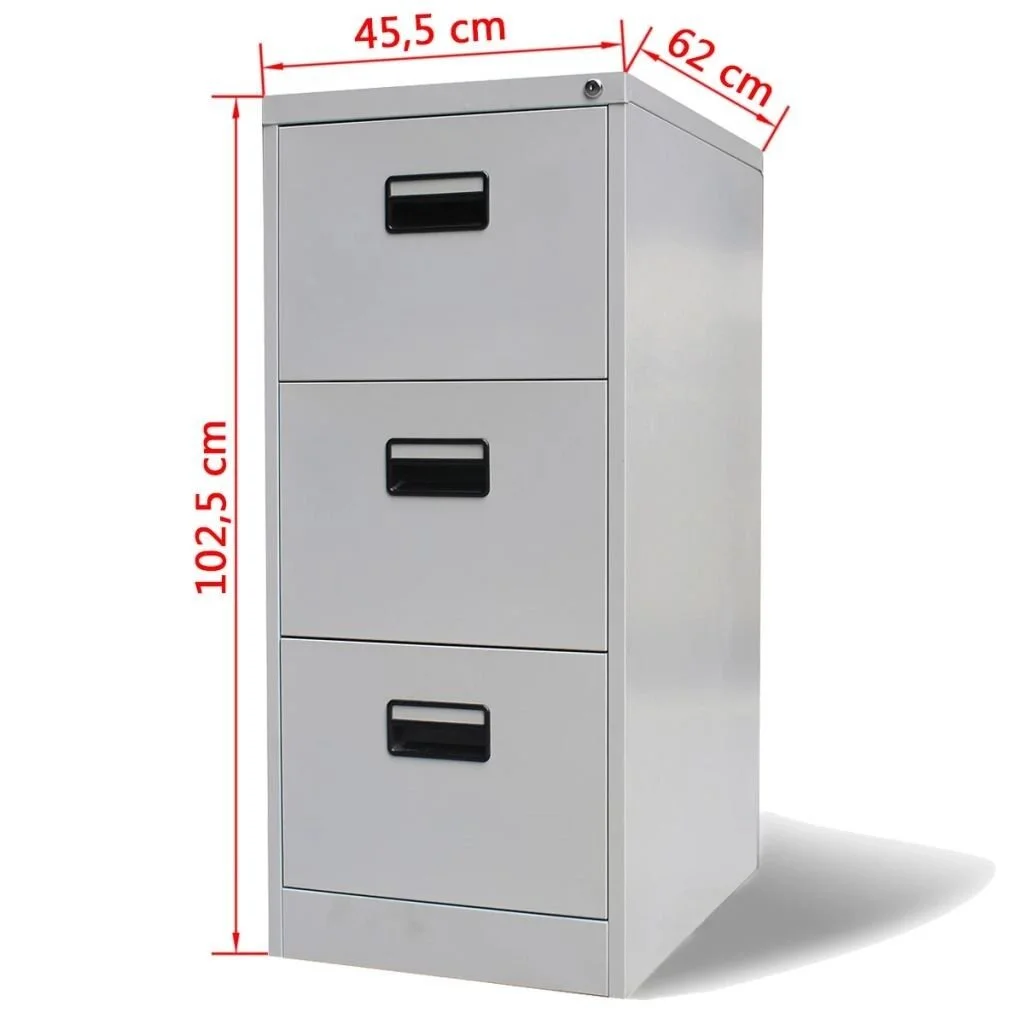This office cabinet, with a simple yet stylish design, will be ideal for file storage but also make a great decorative addition to your office. With 3 drawers, this file cabinet allows you to neatly sort your files into different categories. The 3 drawers are equipped with ball bearing runners, which make them run smoothly in spite of high load conditions. This cabinet will suit any office décor thanks to its classic design. As it is made of steel, it is not only sturdy but also easy to clean and maintain. Assembly is very easy as the necessary accessories (screws, footpads, and locks) are included in the delivery.