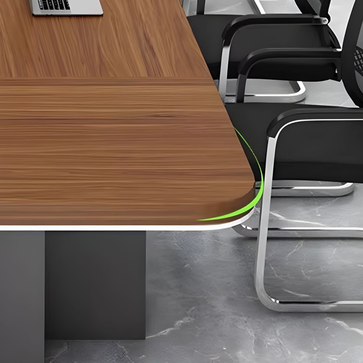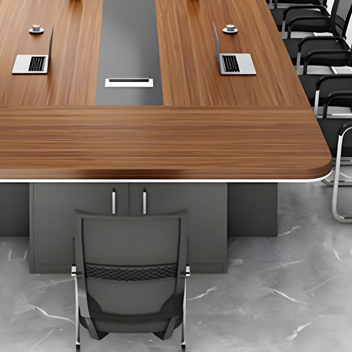 Integrated cable management solutions help keep your workspace neat and organized, with discreet cut-outs or grommets for power cords, data cables, and charging stations—ensuring a clean tabletop for laptops, documents, and tech accessories. The table’s minimalist design allows it to pair effortlessly with various boardroom chairs, whether you’re aiming for corporate elegance or modern minimalism.