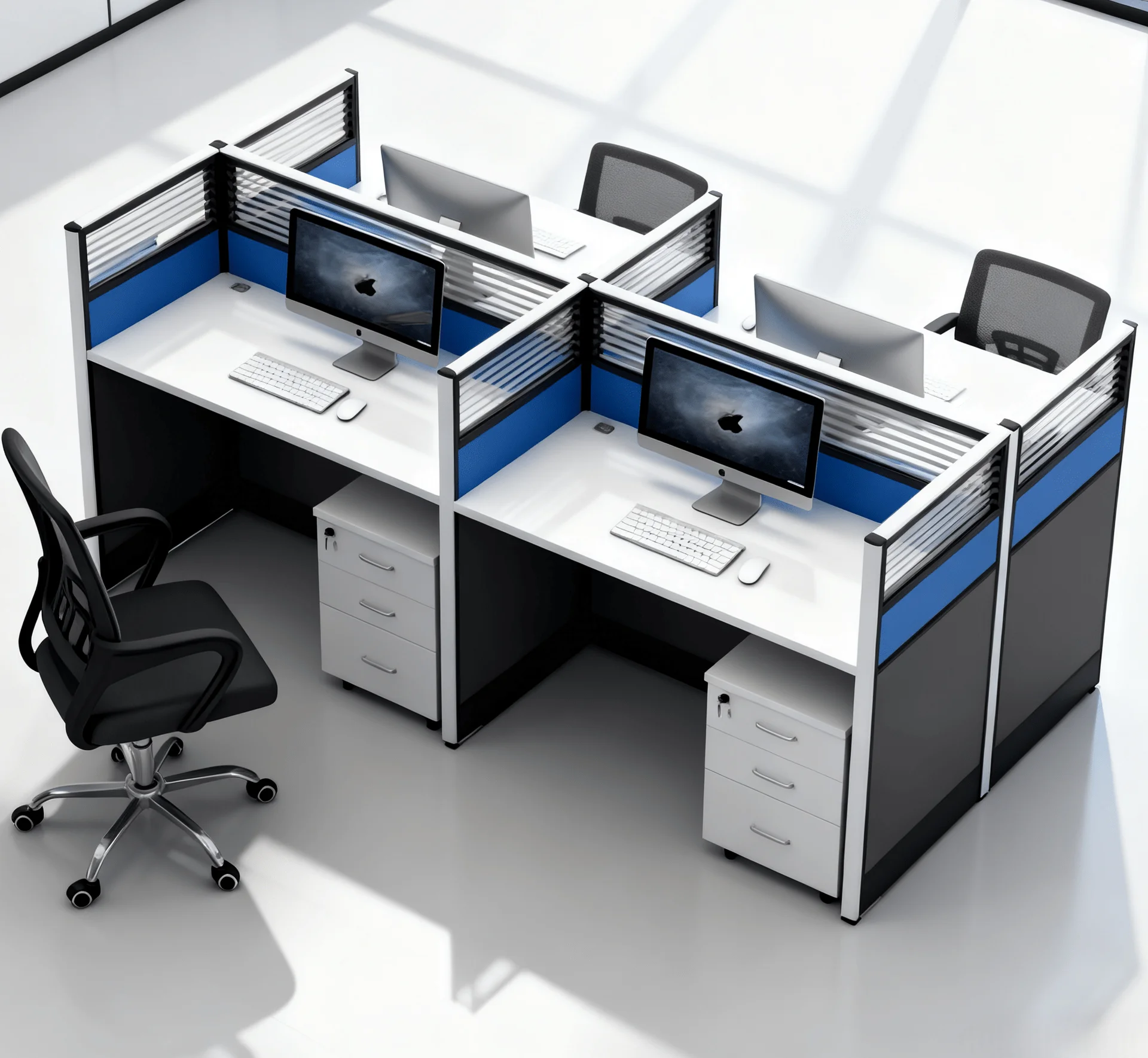 The 4-way configuration allows four employees to work simultaneously while maintaining defined personal spaces. Its corner-based arrangement maximizes office floor utilization, making it ideal for open-plan layouts. Additionally, the workstation includes partition panels that provide privacy without isolating team members, encouraging communication and collaboration when needed. This design ensures both productivity and a professional office aesthetic.