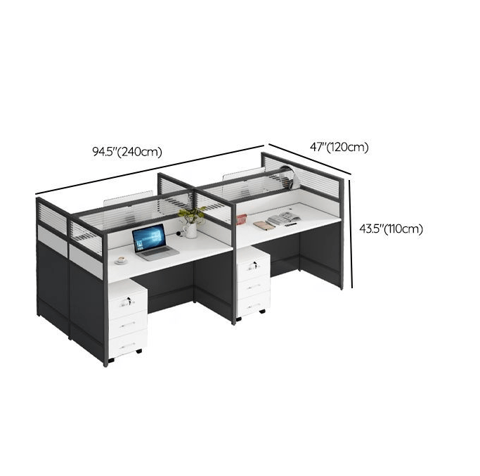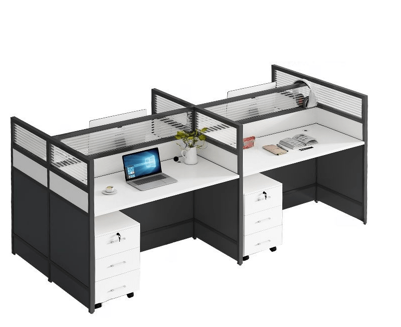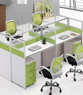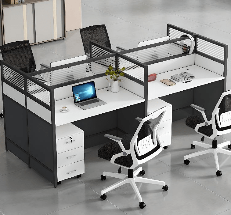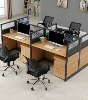 Despite accommodating four users, the desk maintains a compact footprint that fits well in various office layouts. It optimizes available space efficiently without overcrowding the room.
