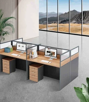 Optimize collaborative workspaces with the 4-Way Work Desk, designed to accommodate four users comfortably while promoting teamwork and productivity. Each workstation is thoughtfully arranged in a square layout, providing individual space with ample desktop area and privacy panels for focused work. Made from durable materials with a clean, modern finish, this desk setup is perfect for open-plan offices, call centers, or creative studios. Its modular design allows easy assembly and flexible configuration to suit various office needs.