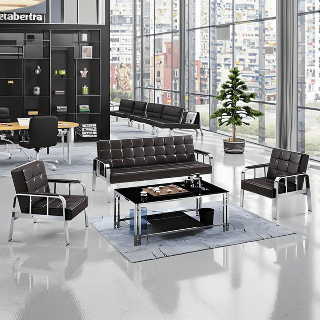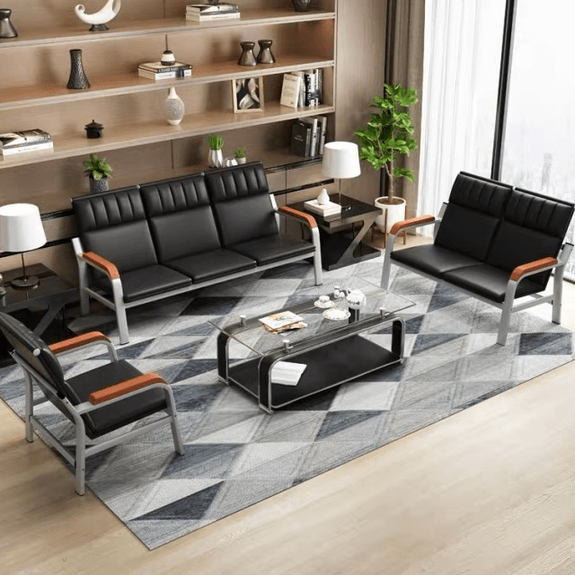 Finally, the sofa is designed for convenience and easy maintenance. Its smooth upholstery surface allows for quick cleaning, ensuring hygiene and a polished look at all times. Additionally, its modern design allows for easy integration with other office furniture, including coffee tables, side tables, and reception desks, creating a cohesive and stylish reception area.