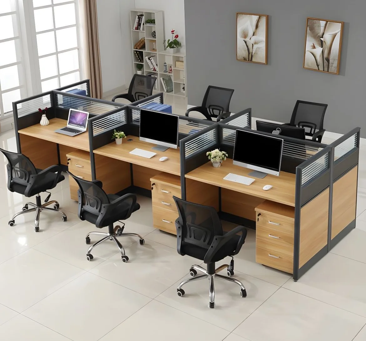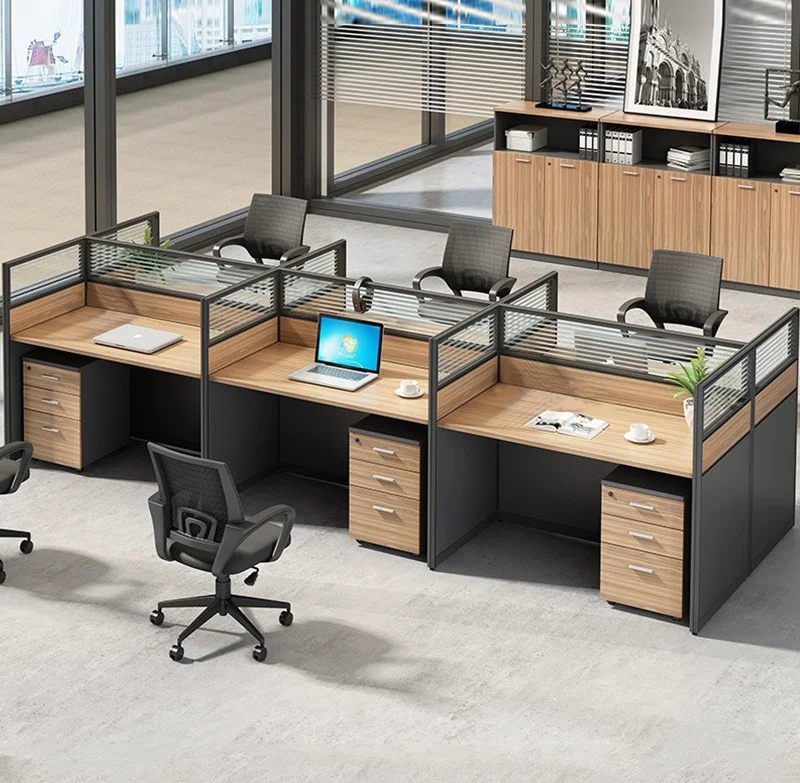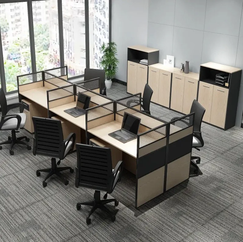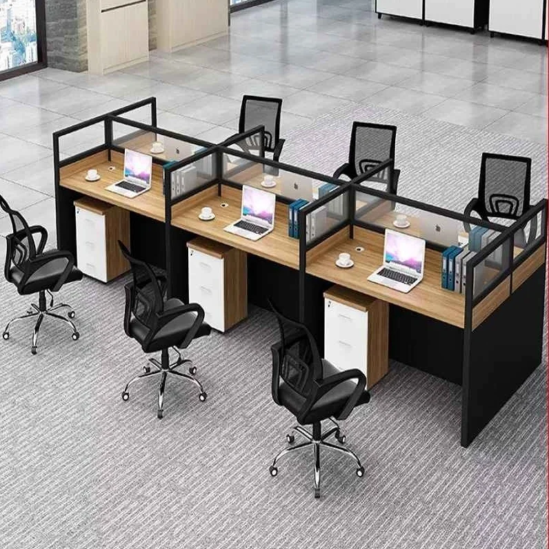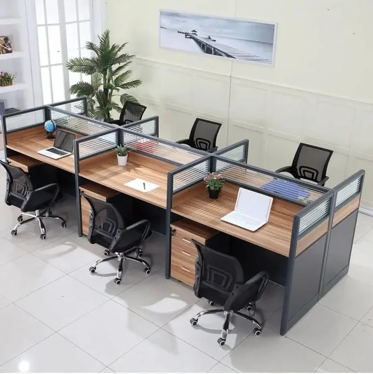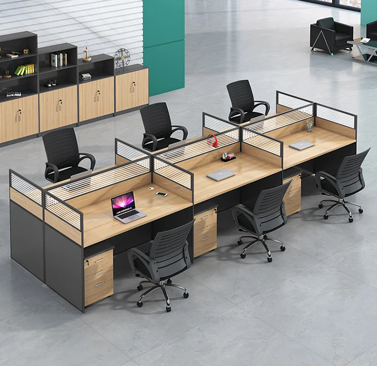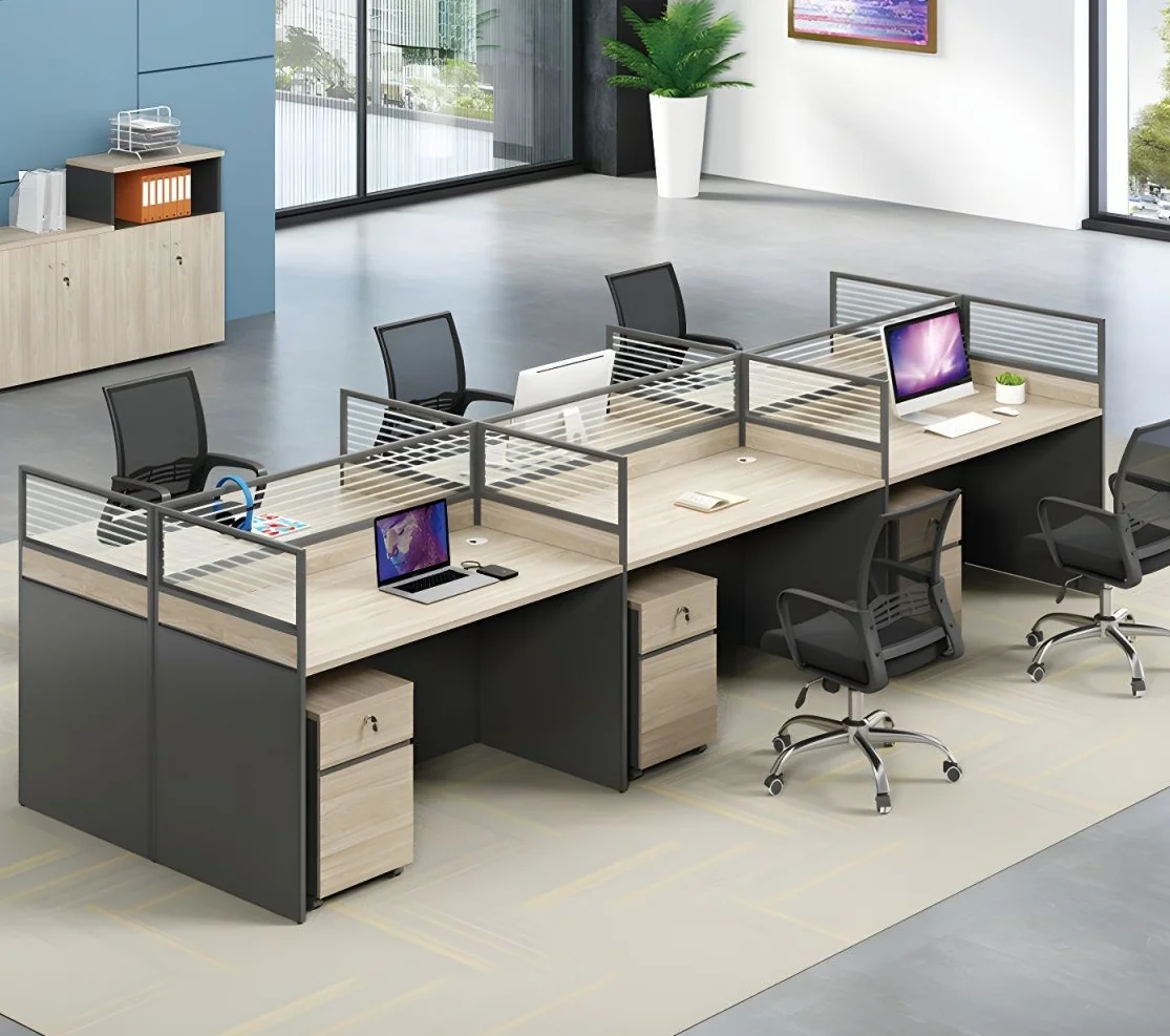 Durability and aesthetics are critical features of the 6-way office workstation. Constructed from high-quality materials such as engineered wood, metal frames, and laminate surfaces, the workstation is built to withstand daily use while maintaining structural integrity. Its sturdy design ensures stability for multiple users simultaneously, supporting computers, monitors, and office equipment without compromise.