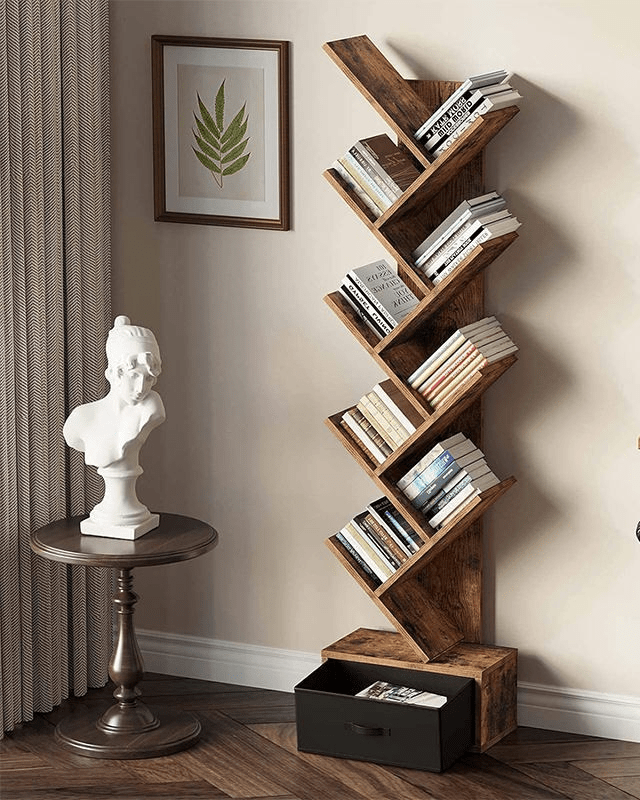 The 8-Tier Office Bookshelf features eight generously sized shelves that accommodate books, documents, stationery, and decorative pieces. Its open design allows for easy access to stored items, promoting an organized and efficient workspace. Additionally, the shelves can hold both lightweight and moderately heavy items, making it versatile for various office and home storage needs. As a result, this bookshelf keeps your workspace tidy while displaying your essentials in a visually appealing manner.