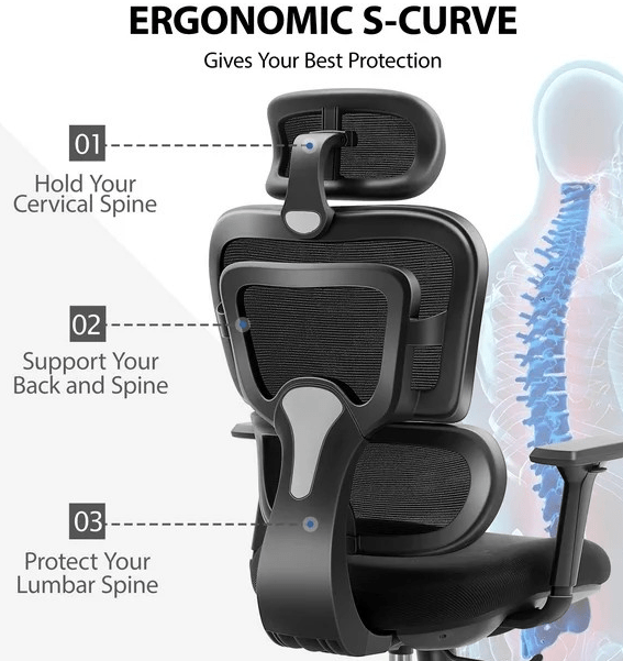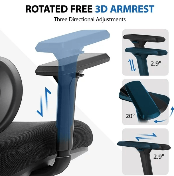 Keywords: adjustable ergonomic chair, armrest headrest office seat, customizable mesh chair, ergonomic office seating, support office chair.
