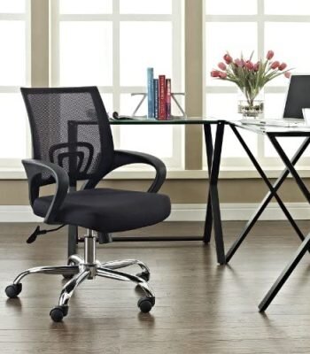 Good looking, airy and comfortable. Designed with mesh back and well padded seat, upholstered in soft black fabric, our guest chair keeps your guests relaxed at your office and comfortable as they discuss with you. It rests on a solid frame with plastic insert to keep your floor scratch free, while its black finish makes for a bold, elegant and professional look in your office.Â
