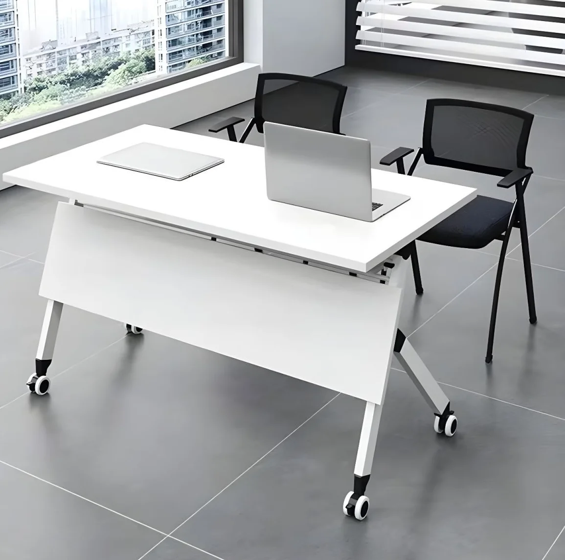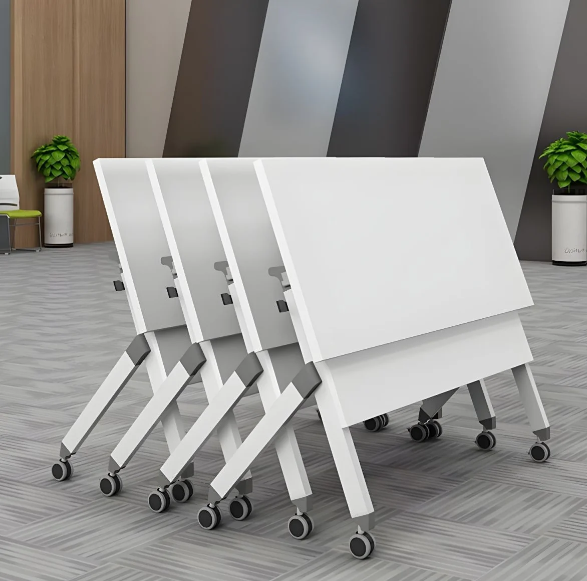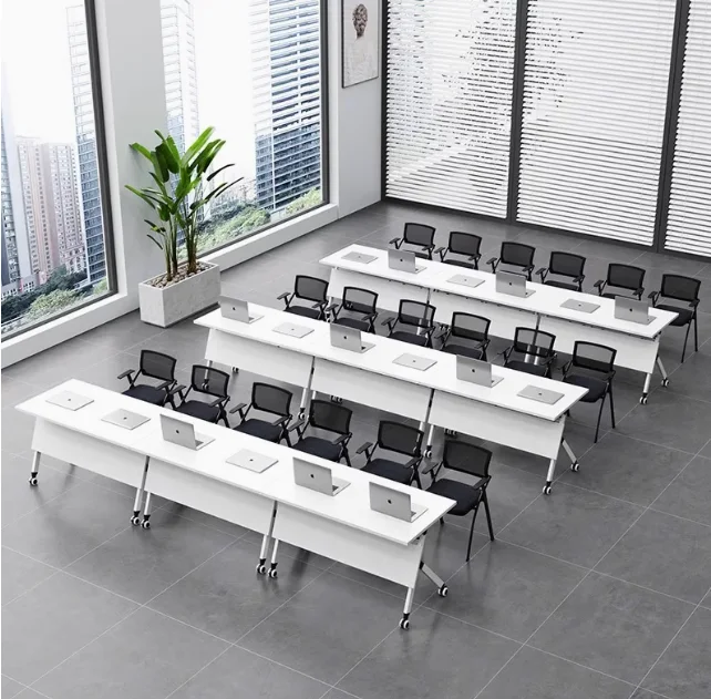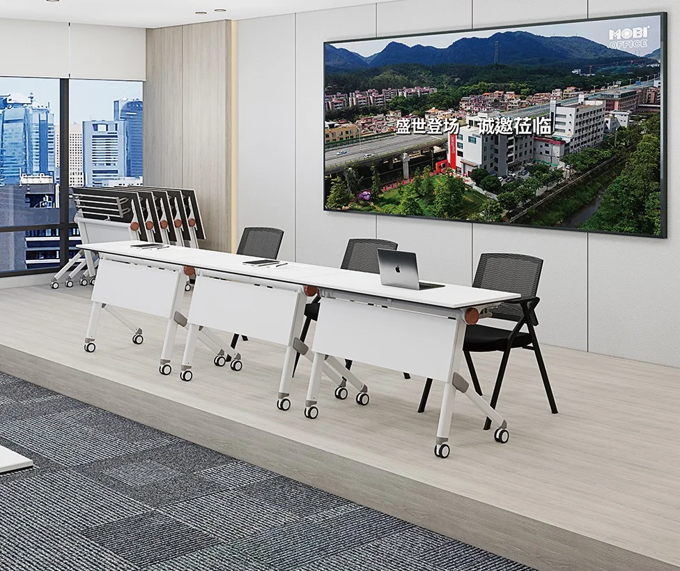 Constructed from high-quality materials, this foldable office table guarantees long-term durability and stability. The tabletop is designed to resist scratches, spills, and daily wear, ensuring it maintains its polished look over time. Additionally, the strong metal frame supports the table securely, allowing teams to rely on it for any meeting scenario. Thanks to its robust construction, businesses can enjoy a reliable and long-lasting meeting solution without frequent replacements.