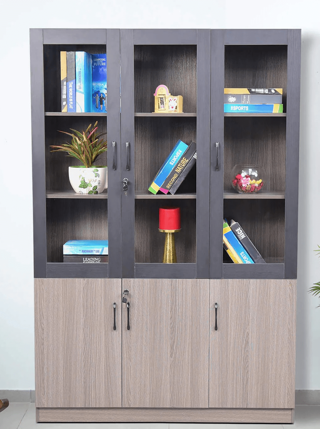 Brown 3-Door Cabinet – Stylish and Practical Office Storage