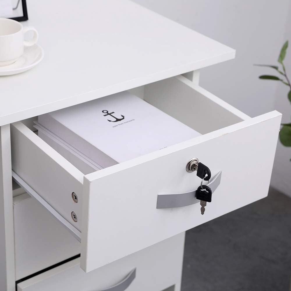 Beyond a workspace, this white computer table with storage also works well as a study desk, crafting table, or general-purpose home table. Its adaptable design and ample storage make it useful for a wide range of activities, from remote work and online learning to hobbies and personal projects.