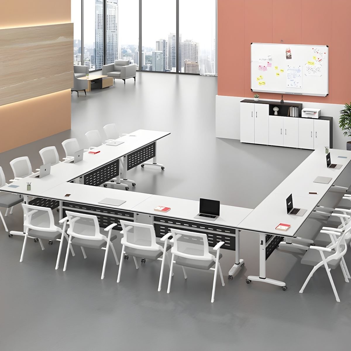Featuring a spacious tabletop and sturdy pedestal legs, our foldable table offers ample space for laptops, documents, refreshments, and other essentials. The versatile design makes it suitable for use in corporate offices, conference rooms, training facilities, event venues, and more.