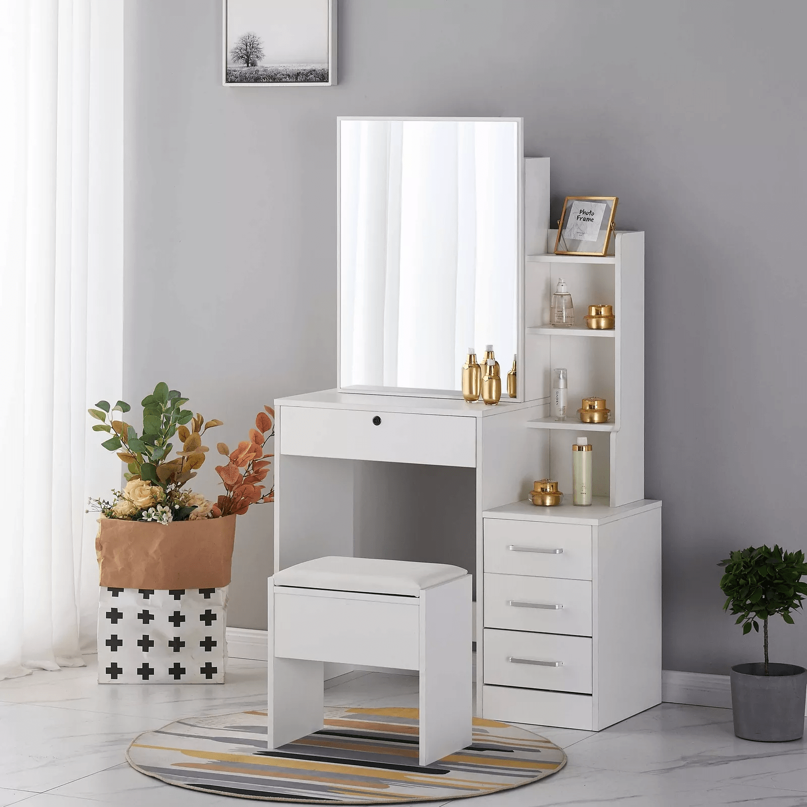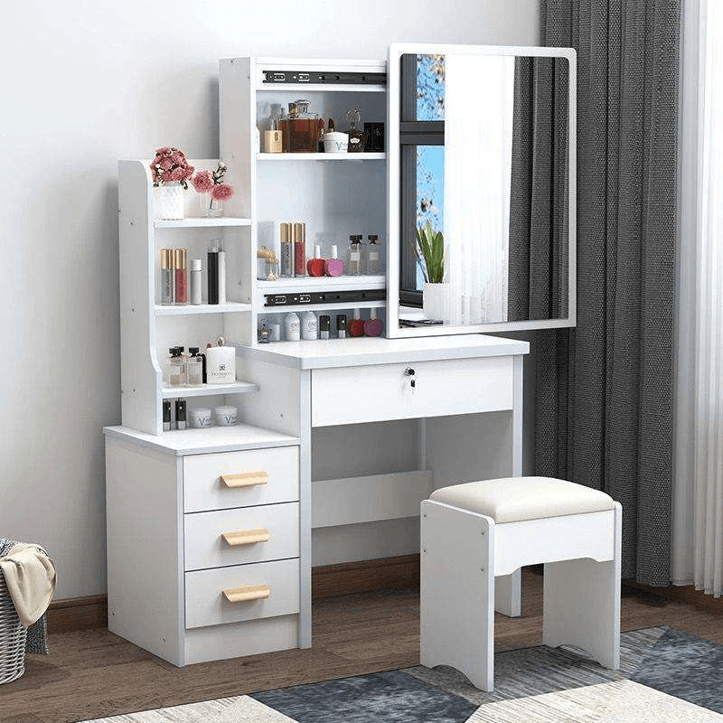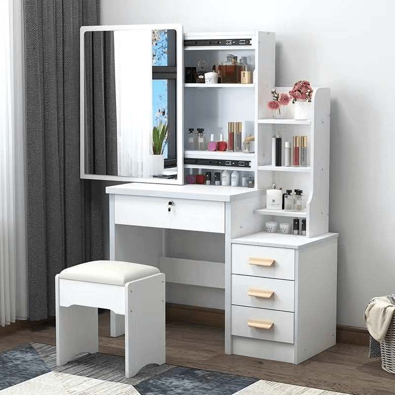 Crafted from high-quality materials, the Dressing Table Set with Mirror is built for durability and everyday use. The sturdy table provides a stable surface, while the mirror offers clear reflection for precise grooming and makeup application. Moreover, the smooth finish adds a refined touch, making the set a stylish centerpiece in any bedroom. Its thoughtful design ensures comfort and ease during daily routines.