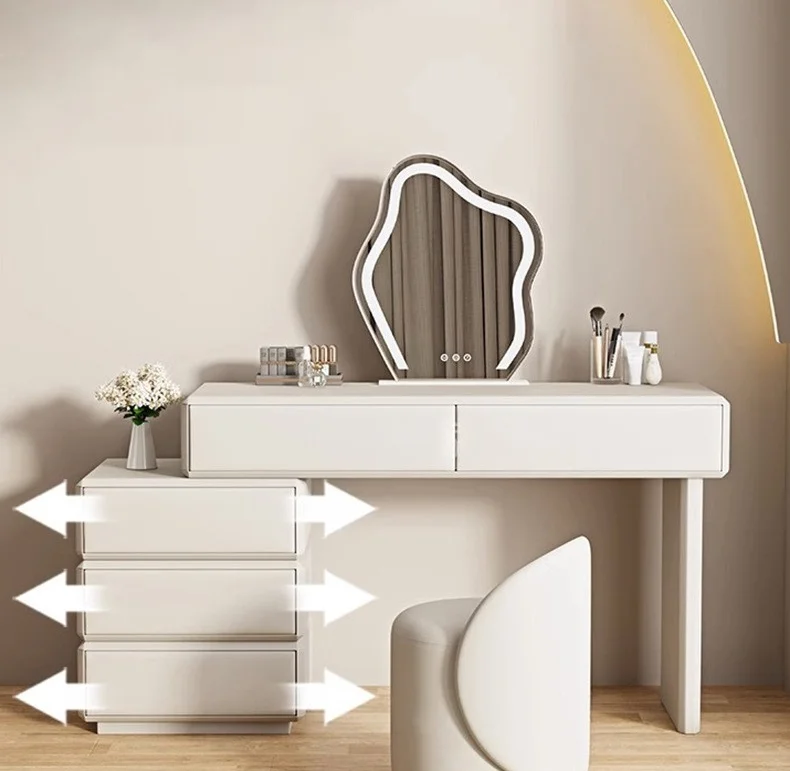 Crafted from premium engineered wood or MDF, this LED dressing table is built to last. The smooth, scratch-resistant surface ensures long-term durability, while the sturdy frame provides stability during daily use. Soft-close drawers prevent noise and damage, enhancing the overall user experience.