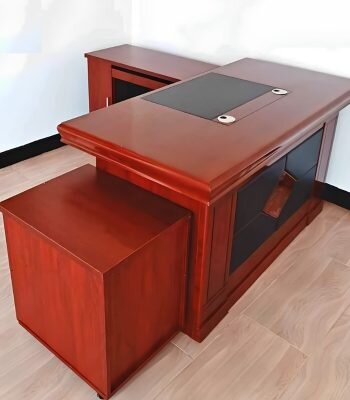 Built from premium materials, this executive desk guarantees long-term durability and stability. Its sturdy frame supports heavy use, while the refined tabletop surface is resistant to scratches and stains. As a result, it remains in pristine condition even after years of daily work. In addition, the well-crafted edges and smooth finish enhance safety and aesthetics.