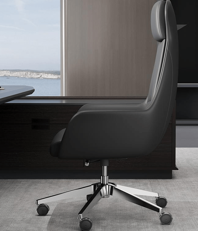 Built with a reinforced frame and premium leather upholstery, this office chair is designed for long-term use without compromising on style. The soft leather surface is not only comfortable but also easy to clean and maintain, ensuring the chair retains its polished look over time. In addition, the sturdy base provides stability while the modern silhouette complements executive offices, boardrooms, and home workspaces. This chair balances strength, elegance, and ergonomic functionality, making it a reliable and sophisticated addition to any professional setting.