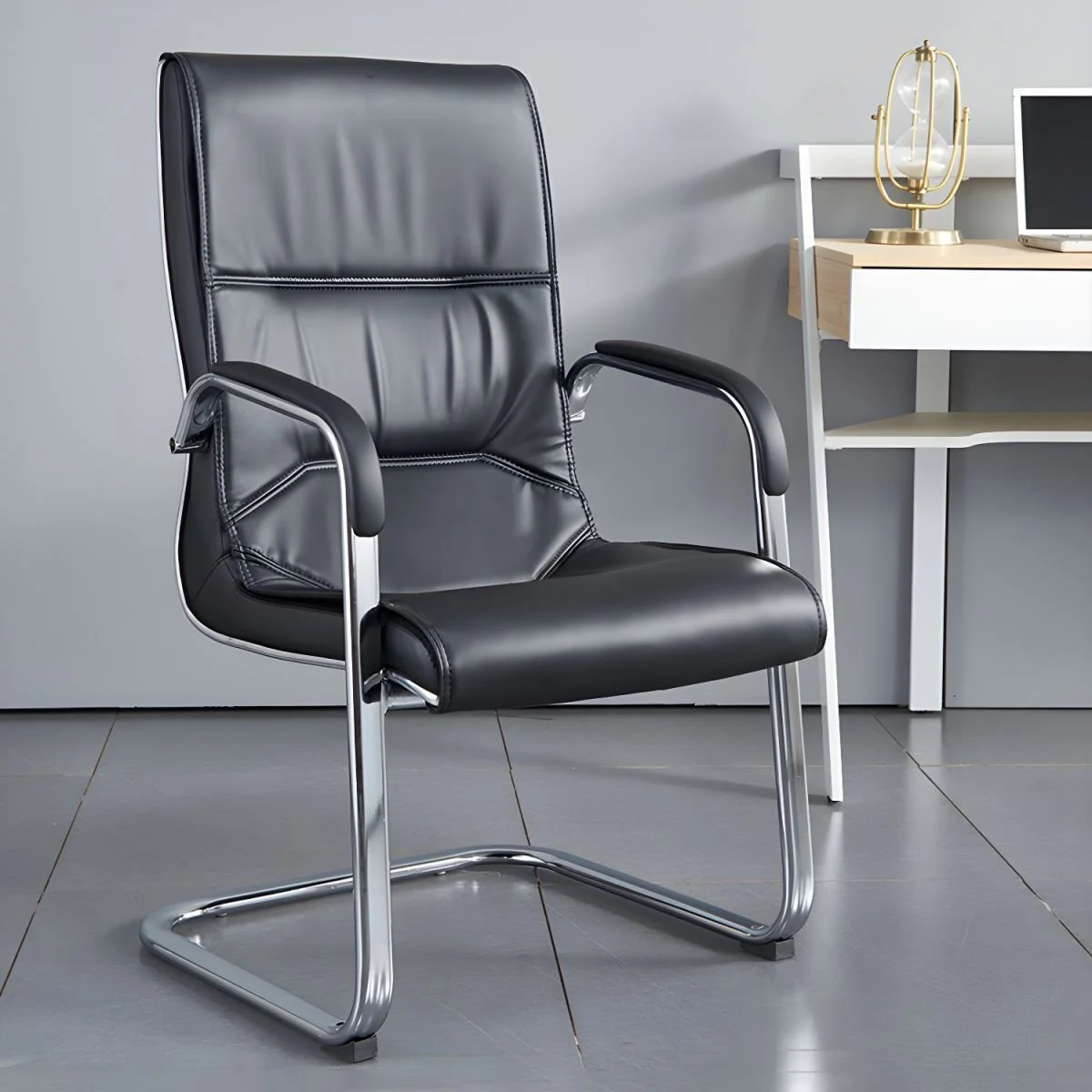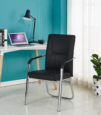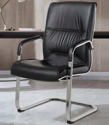 Visitors Chair in Black Faux Leather Make an impression. Get a high-end look at a fraction of the price with this faux leather guest chair. Your visitors will enjoy the comfort of the thick, padded contour seat and back with built-in lumbar support, plus padded arms for additional comfort. Designed for high traffic commercial spaces, the heavy-duty nylon sled base offers durable and supportive construction for years to come. Find the guest seating you need with the Work Smart Deluxe Visitor’s Chair.