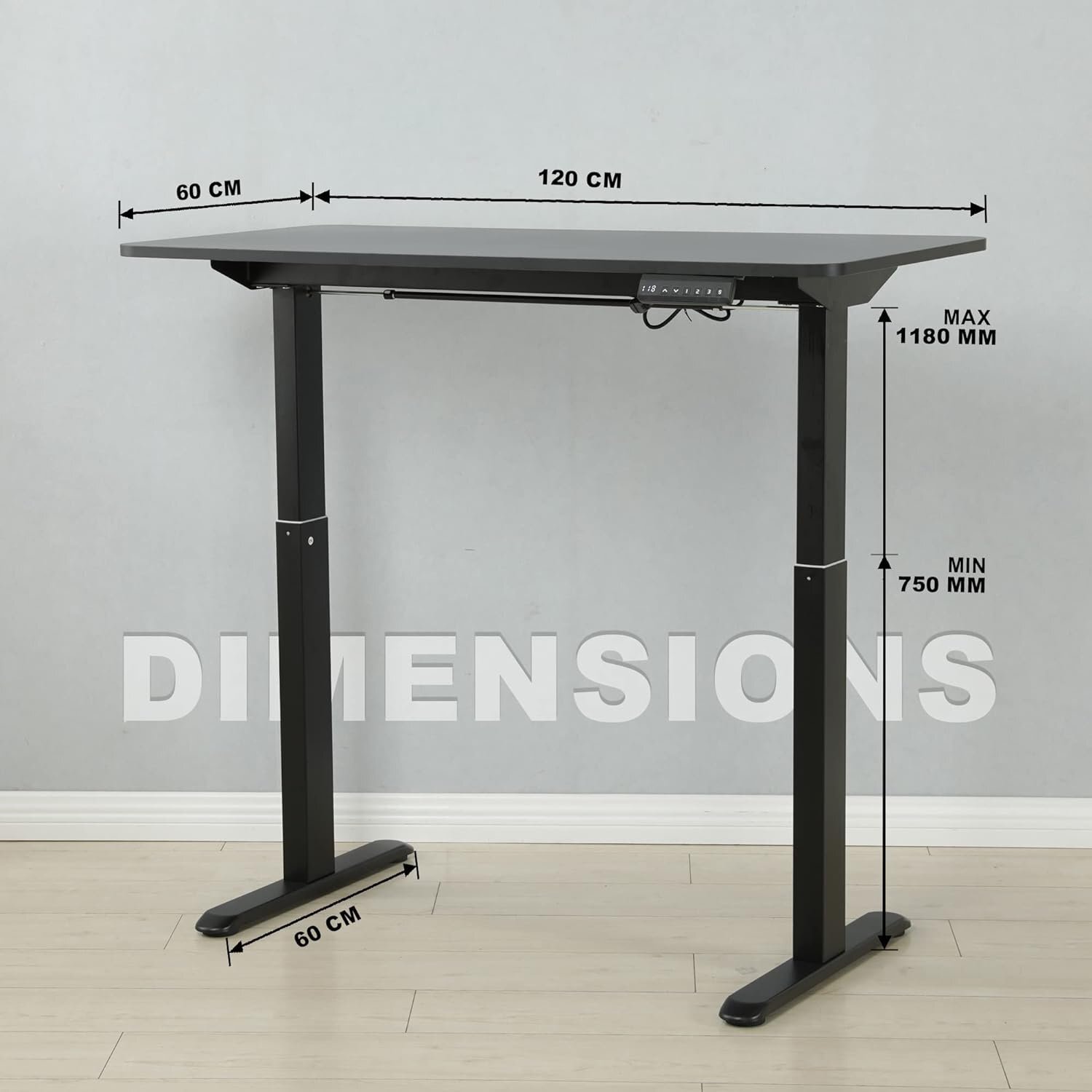 - Dimensions: 120cm (L) x 60cm (W) x adjustable height range from 760mm – 1280mm