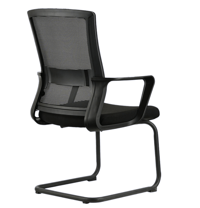 The chair features high-quality mesh material on the backrest and seat. This breathable fabric promotes airflow, preventing heat buildup and ensuring a fresh seating experience even during long hours. Featuring a breathable mesh backrest and a sturdy cantilever frame, this chair offers flexible support and a sleek, lightweight appearance. Its ergonomic design ensures comfort during long sitting hours, while the cantilever base provides gentle bounce and stability.