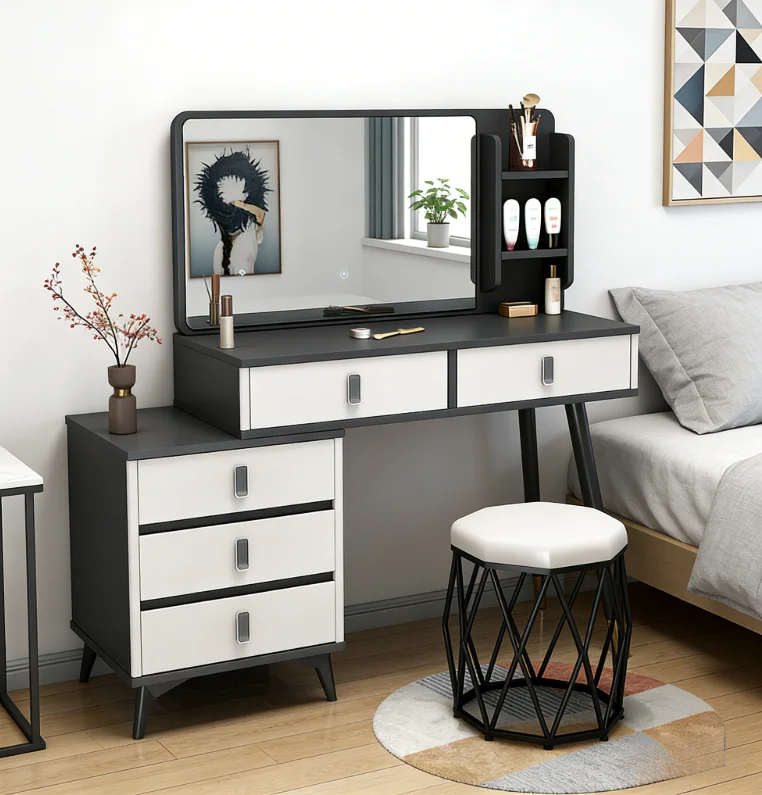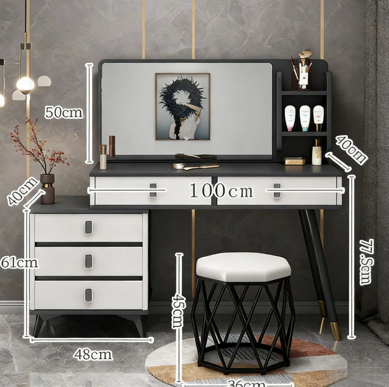 This dressing table is ideal for anyone looking to combine style and functionality. Whether you are a professional getting ready for work, a student preparing for college, or someone who enjoys self-care routines, this modern dressing table enhances convenience and organization.