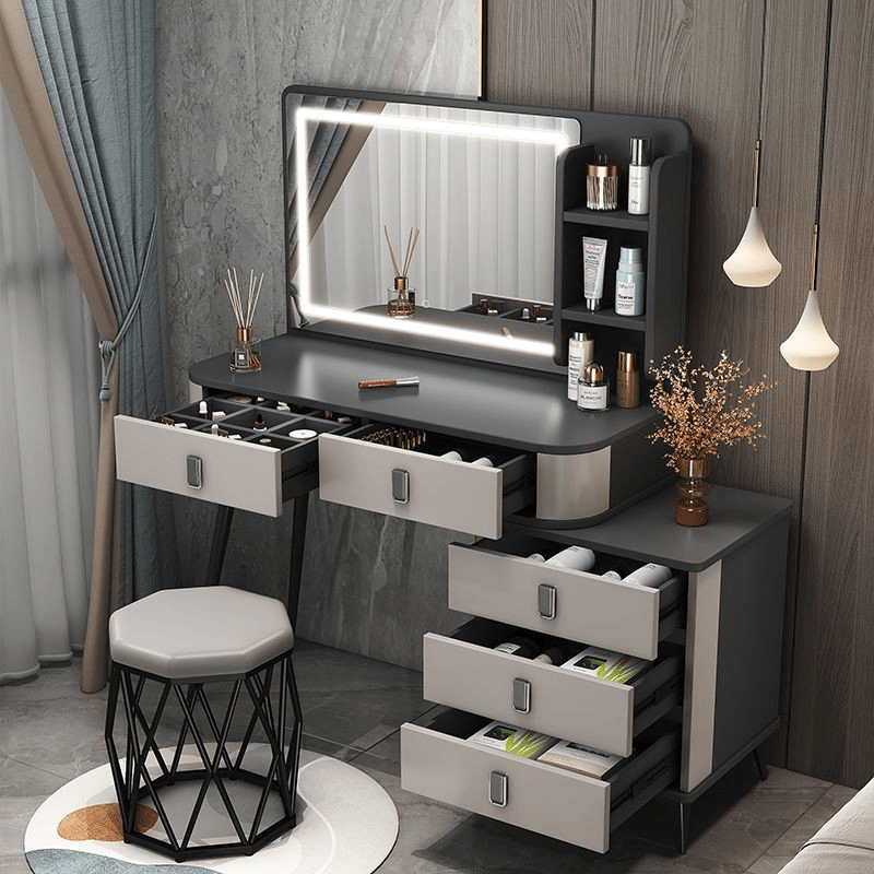 Despite offering generous storage, this dressing table maintains a compact and space-efficient design. It fits comfortably in bedrooms of all sizes and adapts easily to your room layout. Its versatile structure allows for flexible placement, making it suitable for both large master bedrooms and smaller personal spaces.