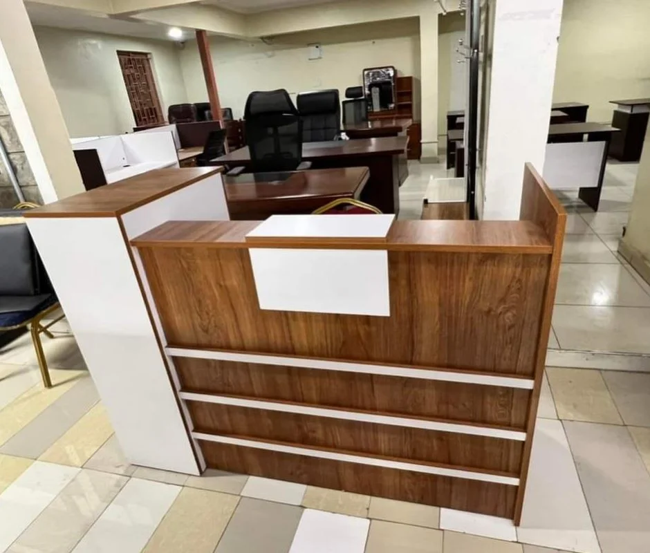 Crafted with high-quality materials, the Modern Office Reception Desk is built to withstand the demands of busy office environments. Its strong frame and durable tabletop resist scratches, spills, and daily wear, ensuring the desk remains visually appealing and functional for years. This durability makes it a cost-effective investment for any professional setting.