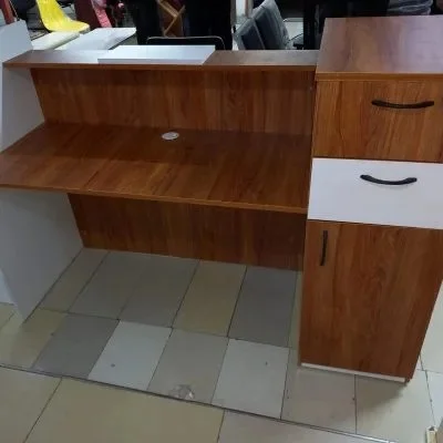 Beyond style, this desk provides a well-thought-out workspace for reception staff. It offers ample surface area for computers, telephones, files, and office accessories, ensuring everything needed for daily operations is within easy reach. The ergonomic layout promotes efficiency, allowing receptionists to manage visitor check-ins, phone calls, and administrative tasks smoothly.