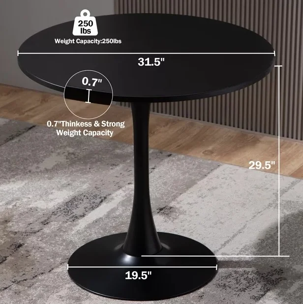 Crafted with high-quality materials, this dining table is durable, easy to maintain, and built to withstand daily use. Its space-saving round design makes it ideal for compact dining areas while still providing ample surface for meals, drinks, and décor.