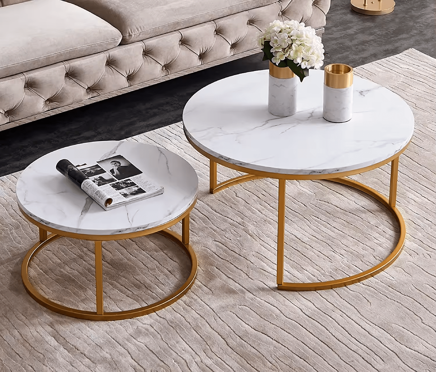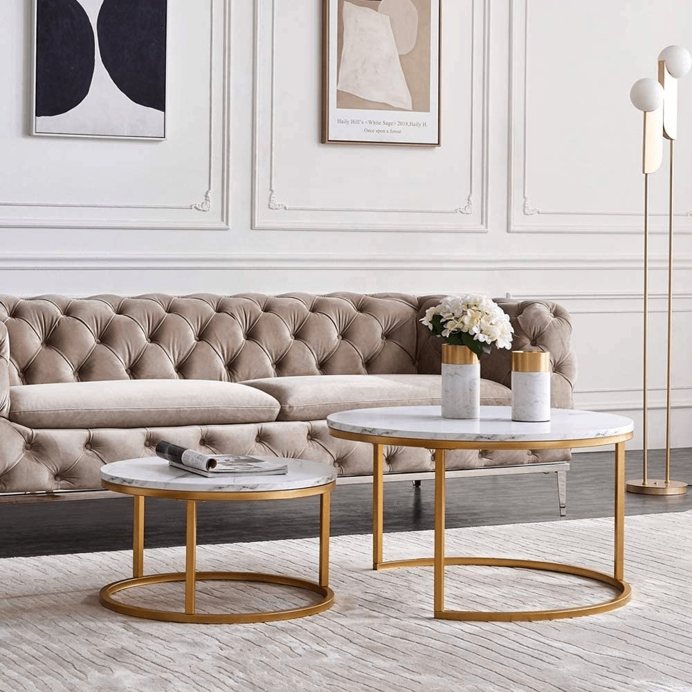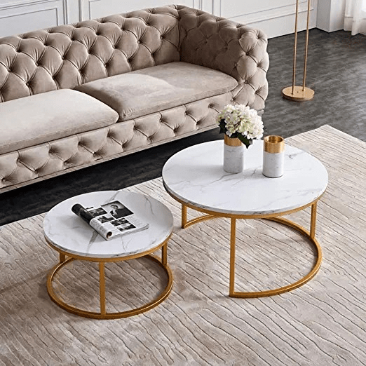 In addition, the tables are crafted from high-quality materials designed to withstand daily use. The sturdy tabletop resists scratches, stains, and heat, ensuring long-lasting durability and maintaining a polished look over time. The strong frame adds stability and reliability, making the nesting coffee tables suitable for both decorative and practical purposes.