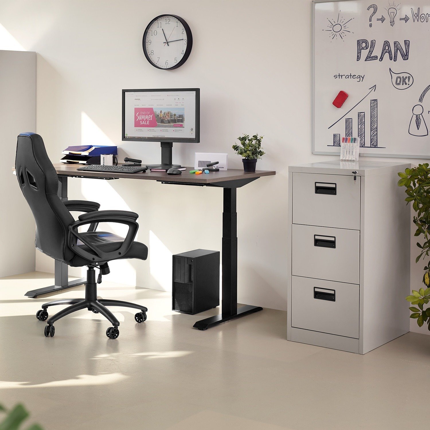 The Office 3-Drawers Filing Cabinet is an essential piece of office furniture that combines functionality, security, and style. Its ample storage space, lockable drawers, and durable construction make it an excellent choice for any office environment, helping to keep your workspace organized and efficient.