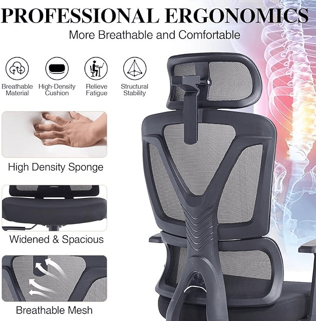 ✅ Breathable mesh back and cushioned seat for all-day use