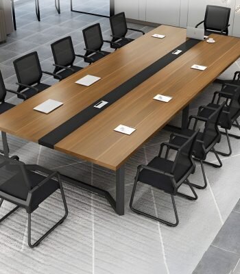 Moreover, the table’s spacious surface allows for multiple users to comfortably access laptops, documents, and presentation materials. Transitioning seamlessly from style to functionality, it combines aesthetic appeal with practical features, making it an ideal solution for modern offices seeking both form and function.