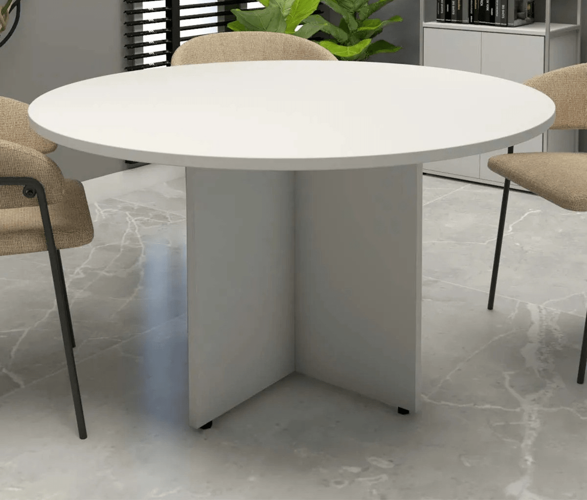 With its sleek lines and refined finish, the Round Conference Table complements a variety of office interiors, from modern to traditional designs. Additionally, its neutral tones allow it to blend seamlessly with other office furniture while enhancing the overall aesthetic of the meeting room. Thus, it adds a touch of sophistication while remaining functional and versatile.