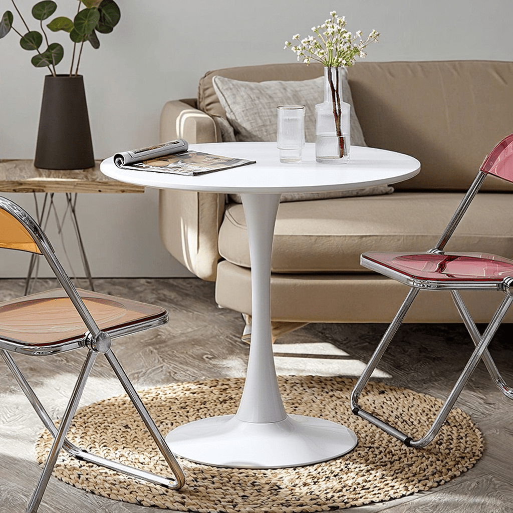 Crafted with high-quality materials, the table features a sturdy base and smooth white tabletop that is easy to clean and maintain. Its timeless design complements a variety of décor styles, from contemporary and Scandinavian to modern minimalist interiors. Lightweight yet durable, this table is both practical and stylish, making it a standout addition to your home.