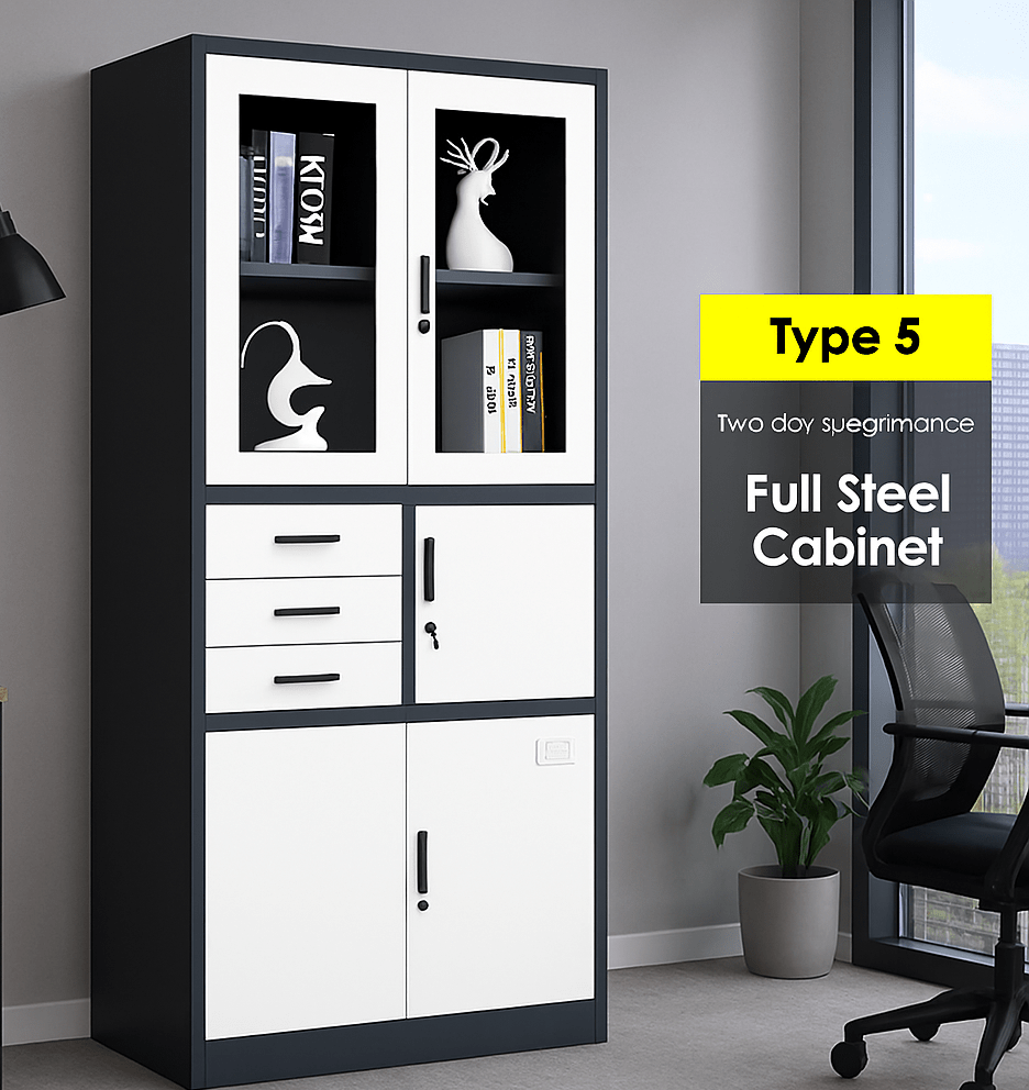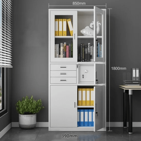 The Cabinet with Safe is crafted from premium steel, offering strength, stability, and long-lasting performance. The robust frame withstands daily use, scratches, and minor impacts, ensuring it maintains its professional look even in busy offices.